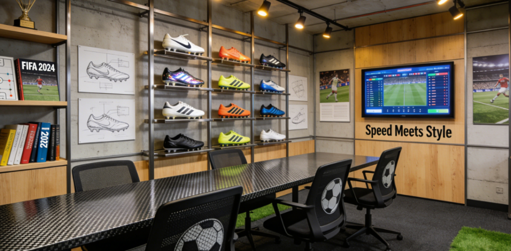 We are a professional football footwear brand committed to combining cutting‑edge sports technology with modern design. Our football‑themed office reflects our passion for the game, innovation, and craftsmanship.